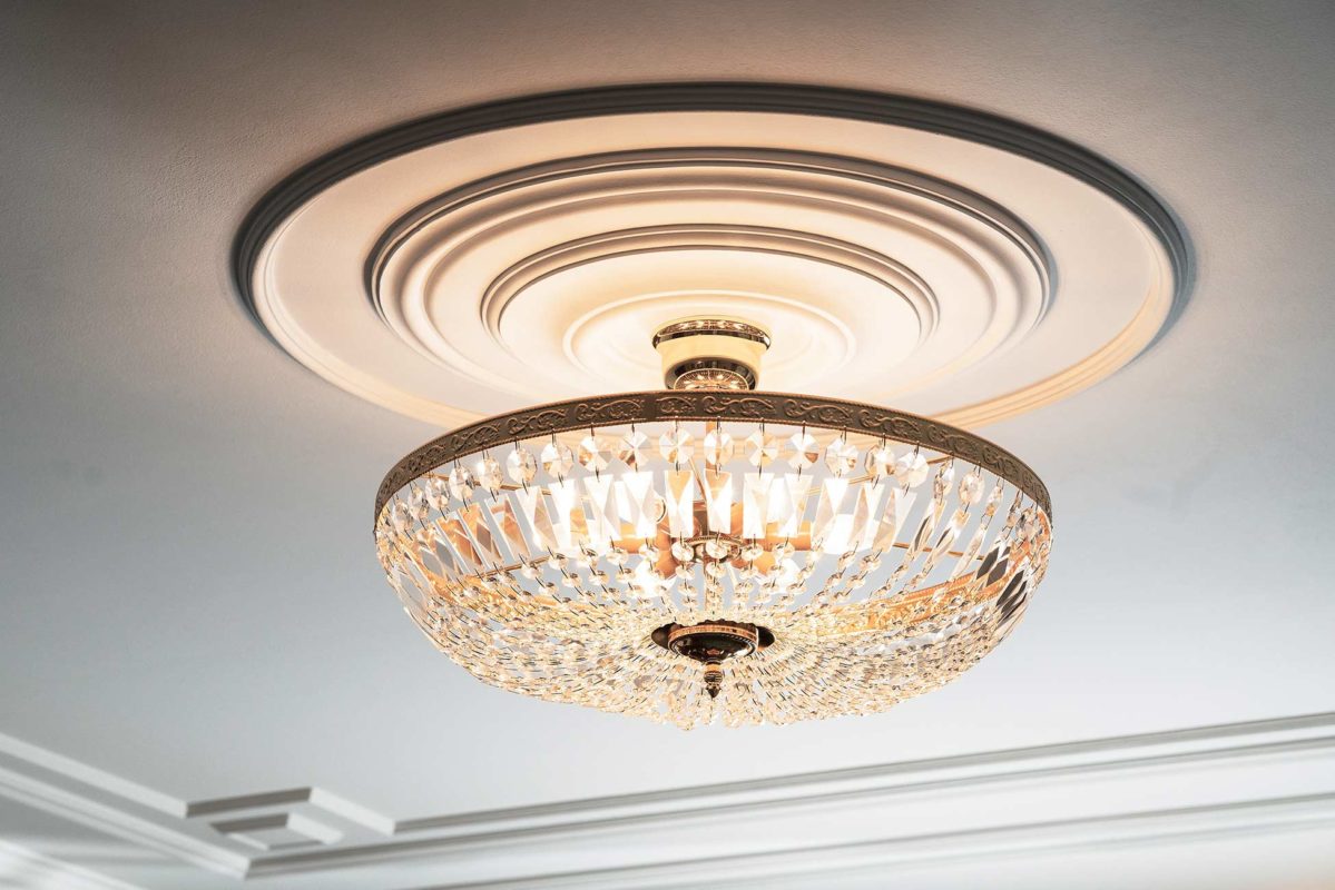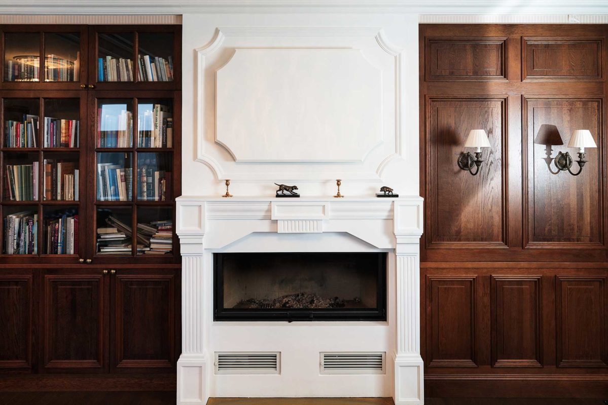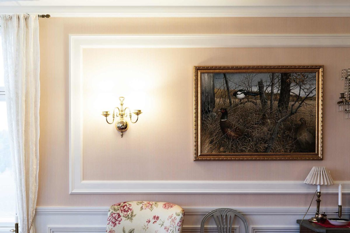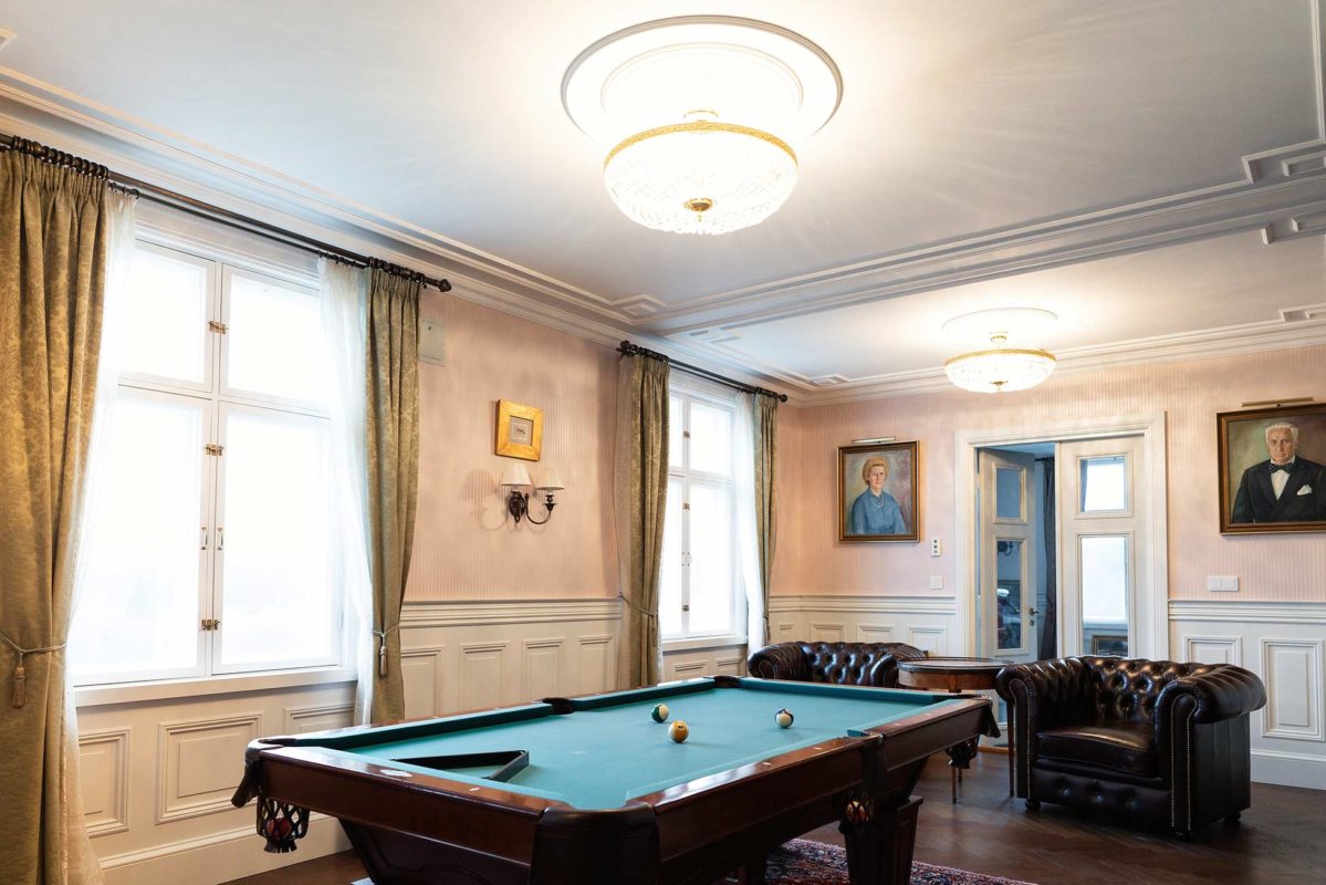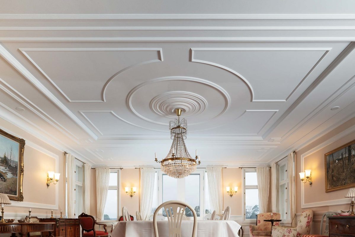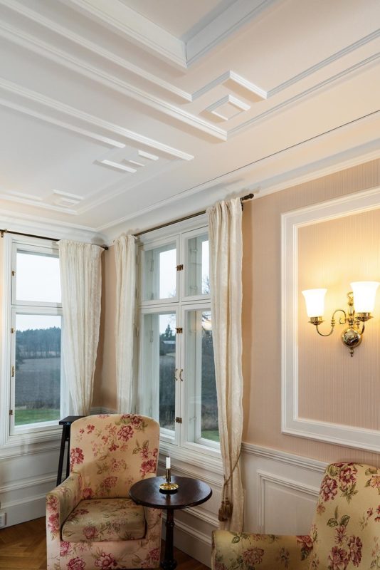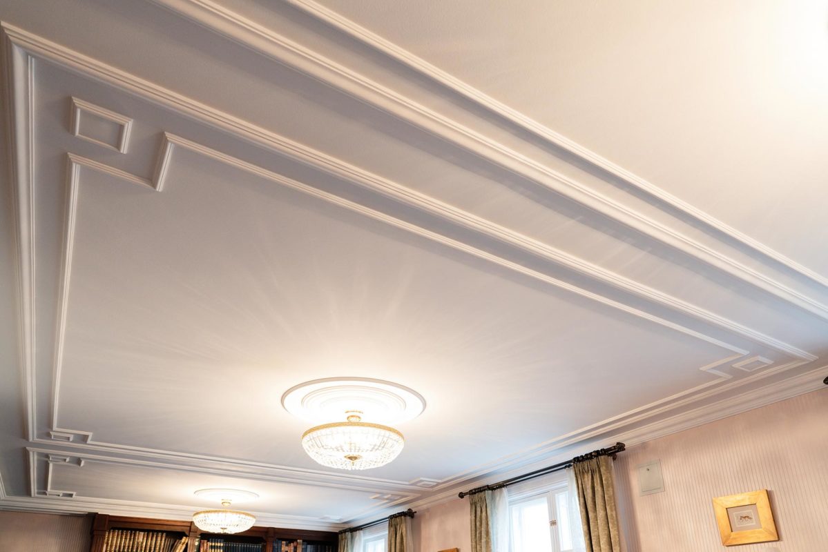 Kipsi Helsinki Oy toteutti kasettikatot, kattolistat, koristekulmat, rosetit, takan ja huuvan.