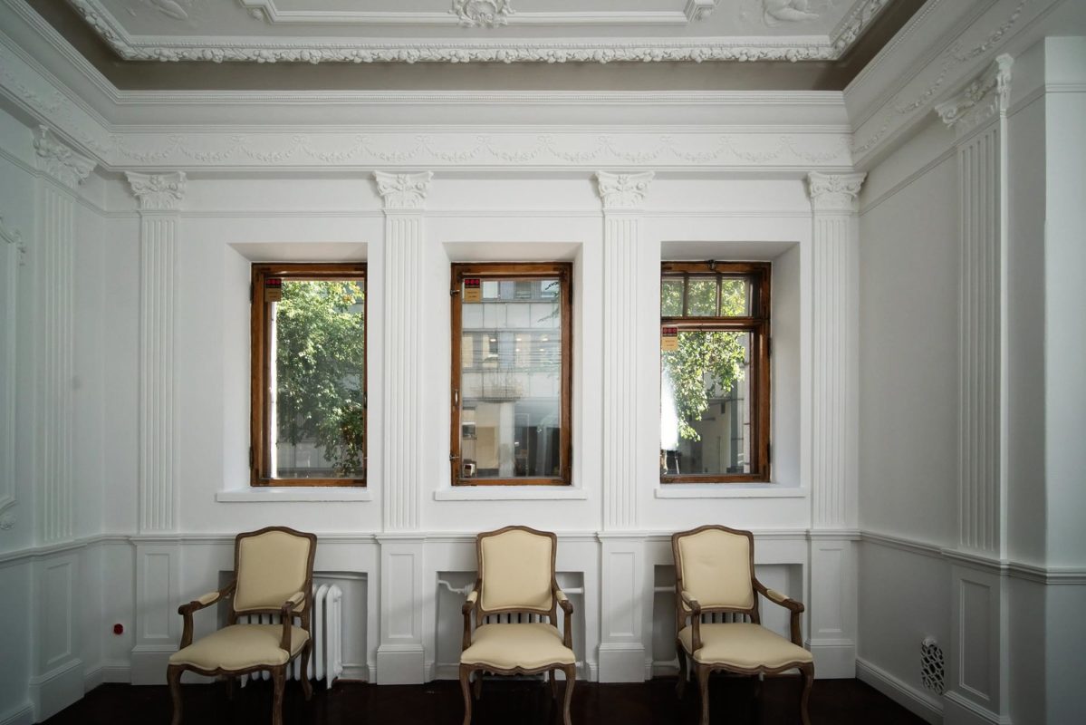 Teimme vuonna 1903 rakennettuun kerrostaloon ravintola- ja kokoustiloja. Yhteen tilaan haluttiin korkealuokkaiset ja koristeelliset kipsityöt. Kipsi Helsinki suunnitteli, valmisti ja asensi kaikki huoneen katto -ja seinäkoristeet sekä takan.