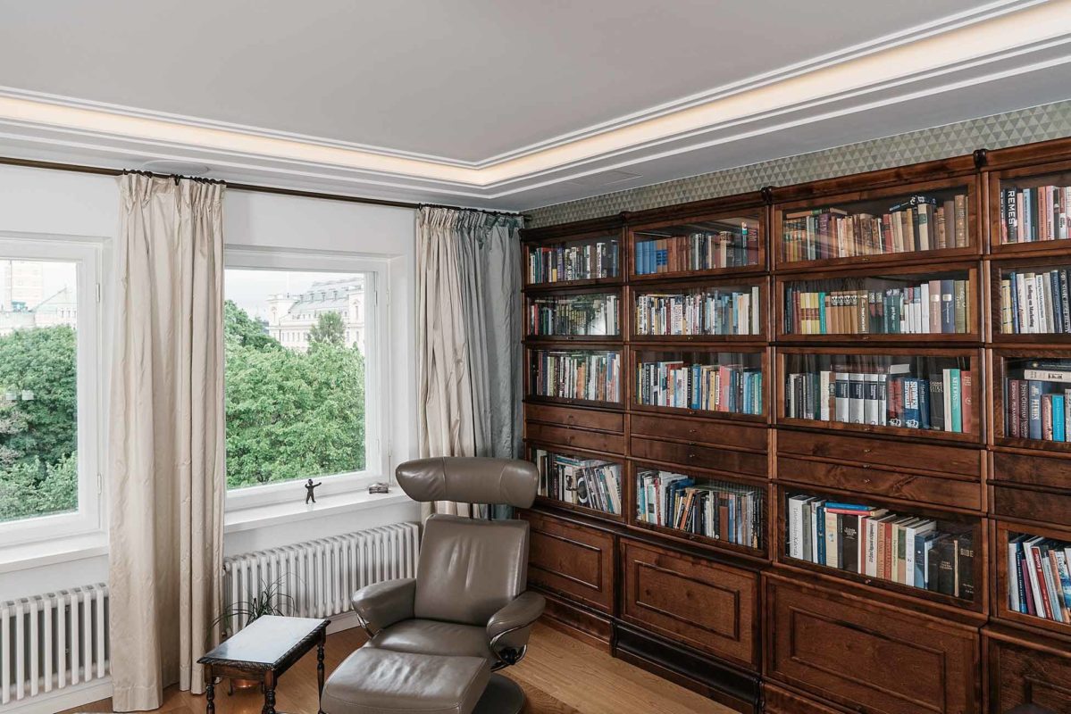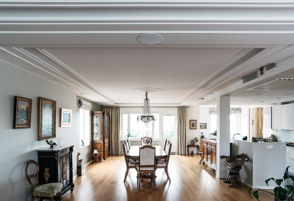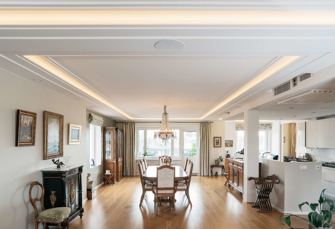 Helsingin Bulevardilla sijaitsevaan huoneistoon tehtiin Teemu Saukkosen piirustusten mukaisesti uudet leveät valolistat, koristelistat ja rosetit mittatilaustyönä. Valolistasta tehtiin 50 cm leveä ja siihen liitettiin kaiuttimet.