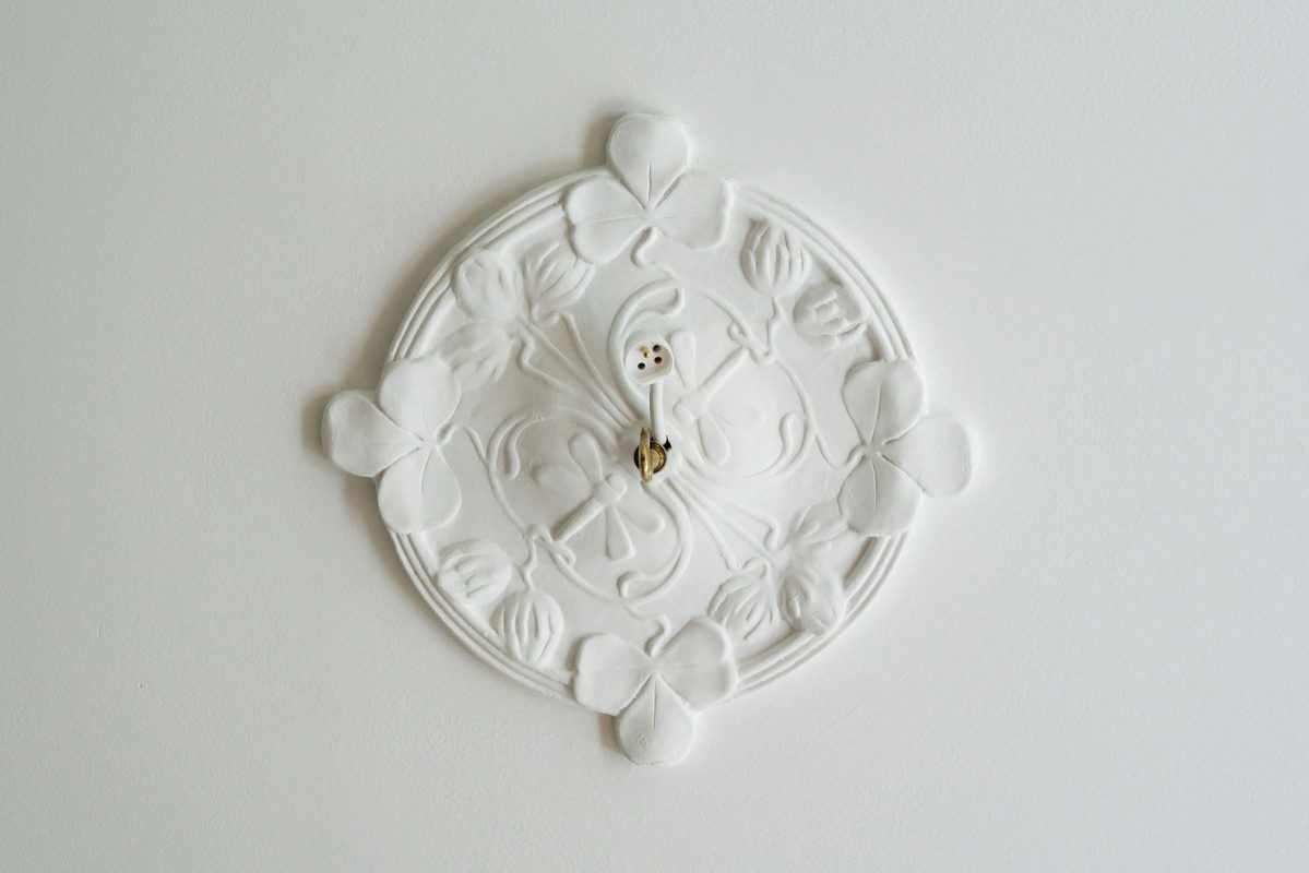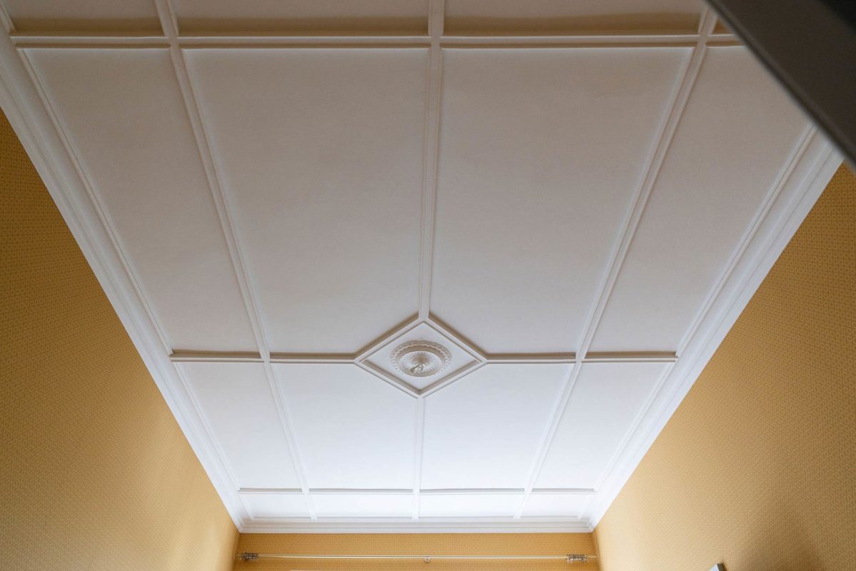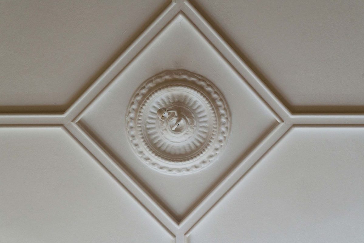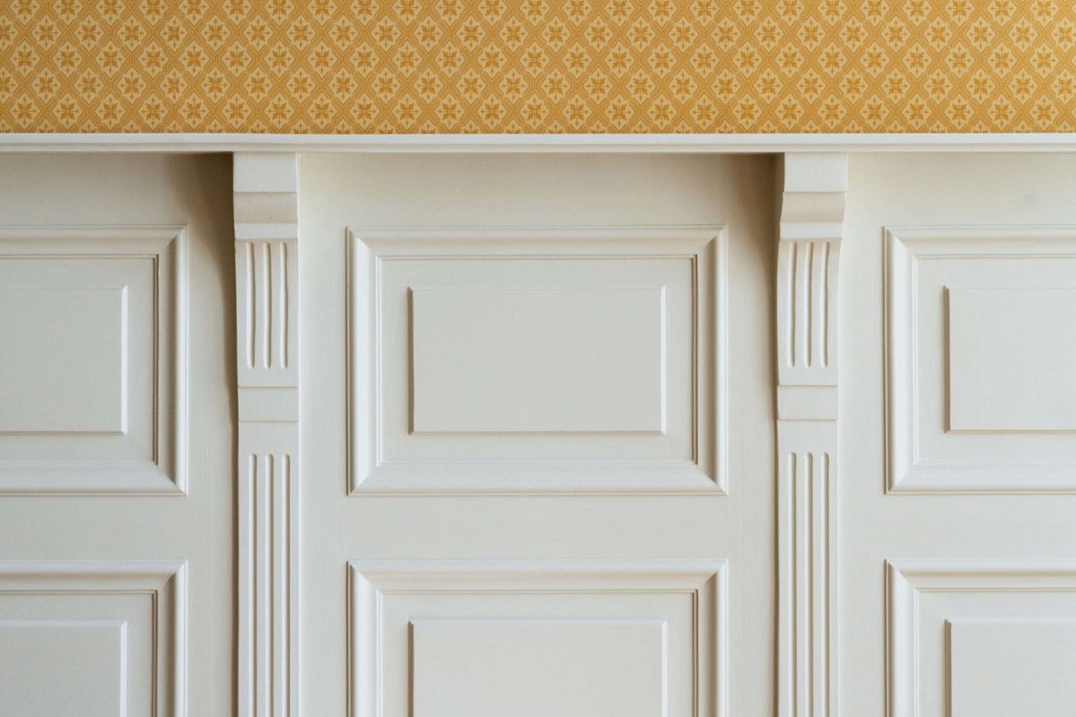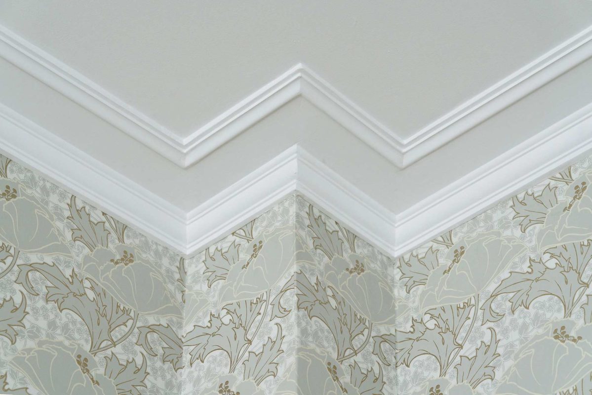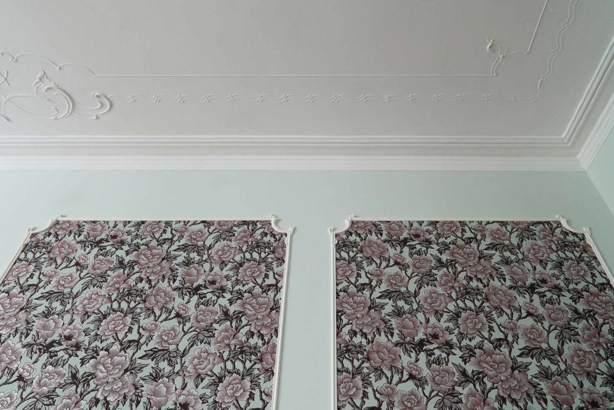 Tässä kohteessa tehtiin lähes kaikki mittatilauksena asiakkaan toiveita ja ohjeita noudattaen. Olohuoneeseen haluttiin saada alkuperäisien kattokoristeiden kanssa sopivat seinälistat. Saliin tehtiin kasettikatto koristelistoilla rakennuksen tyyliin sopivaksi ja seinille asiakas toivoi korkeaa paneelia ja konsoleita. Alkuperäiset lattia -ja ovilistat olivat puusta, mutta niistä haluttiin tehdä kookkaammat, joten ne skaalattiin isommiksi alkuperäistä muotoa noudattaen.