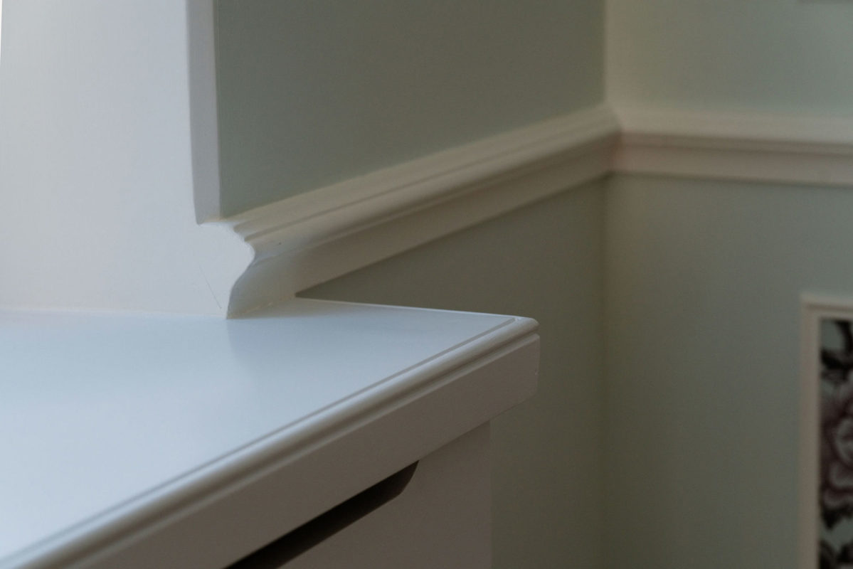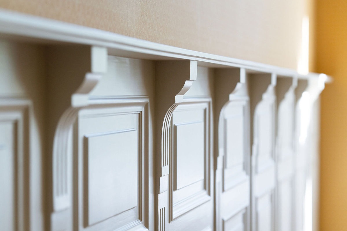 Mielenkiintoinen haaste: Korkean paneelin suunnittelu asiakkaan kanssa oli haastavaa, koska oikeat mittasuhteet ja koristeellisuus piti sovittaa suhteellisen pieneen tilaan sopivaksi. Lopputulos oli onnistunut.