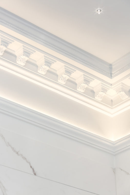 Teimme valoisaan huoneistoon monipuolisesti erilaisia kipsikoristeita: